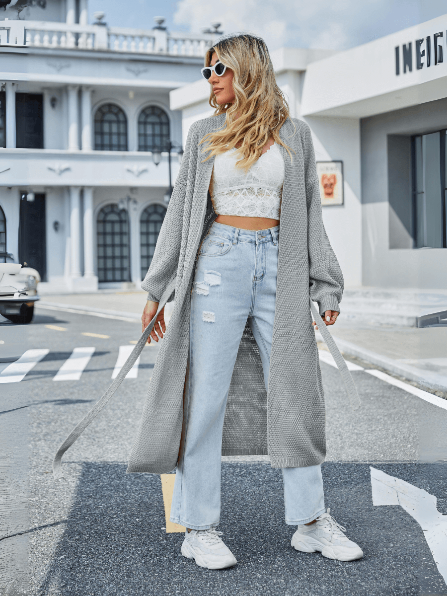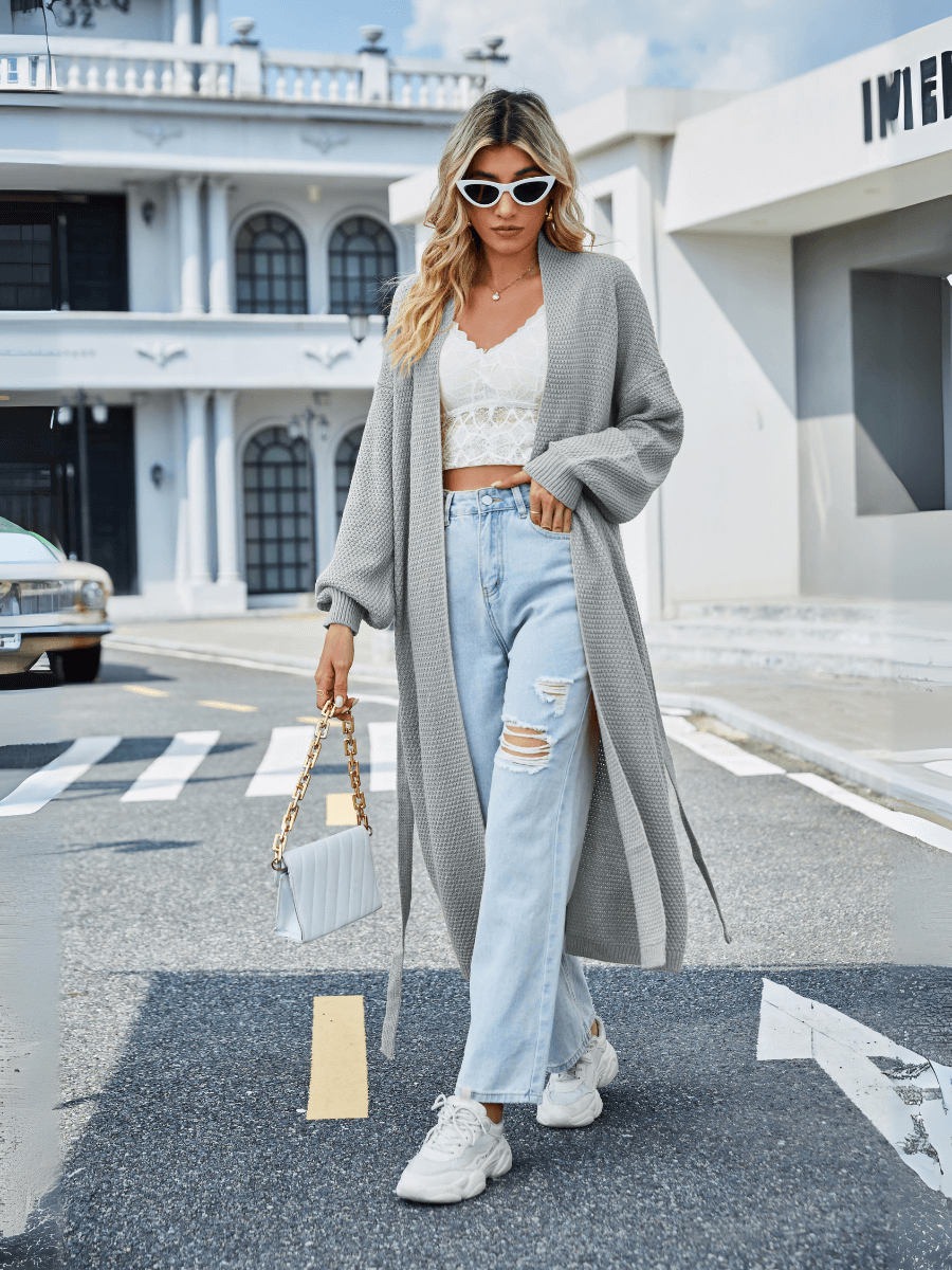 Calistally | TAMIA Bell Cuff Knit Shirt Jacket - Grey