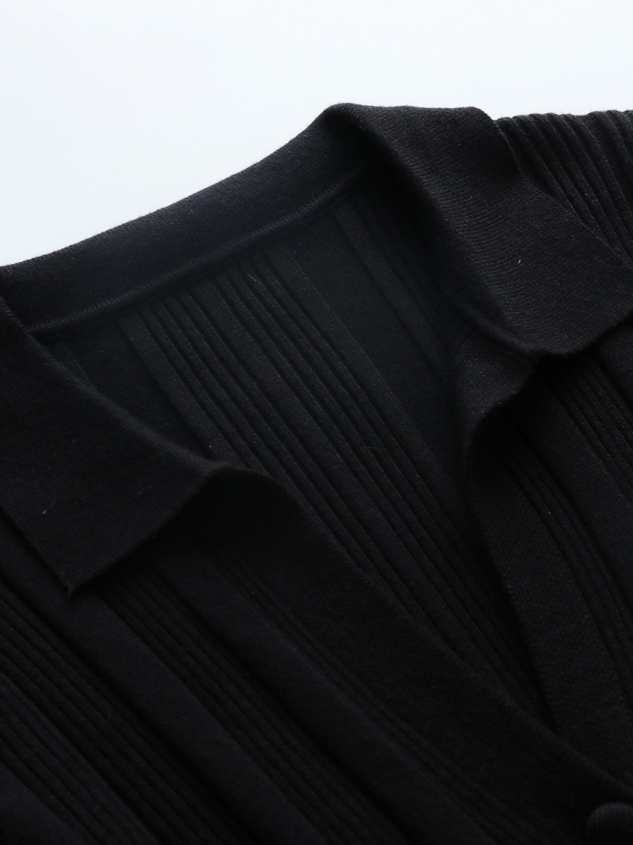 STRIPE POCKET BUTTON UP KNIT CARDIGAN - BLACK