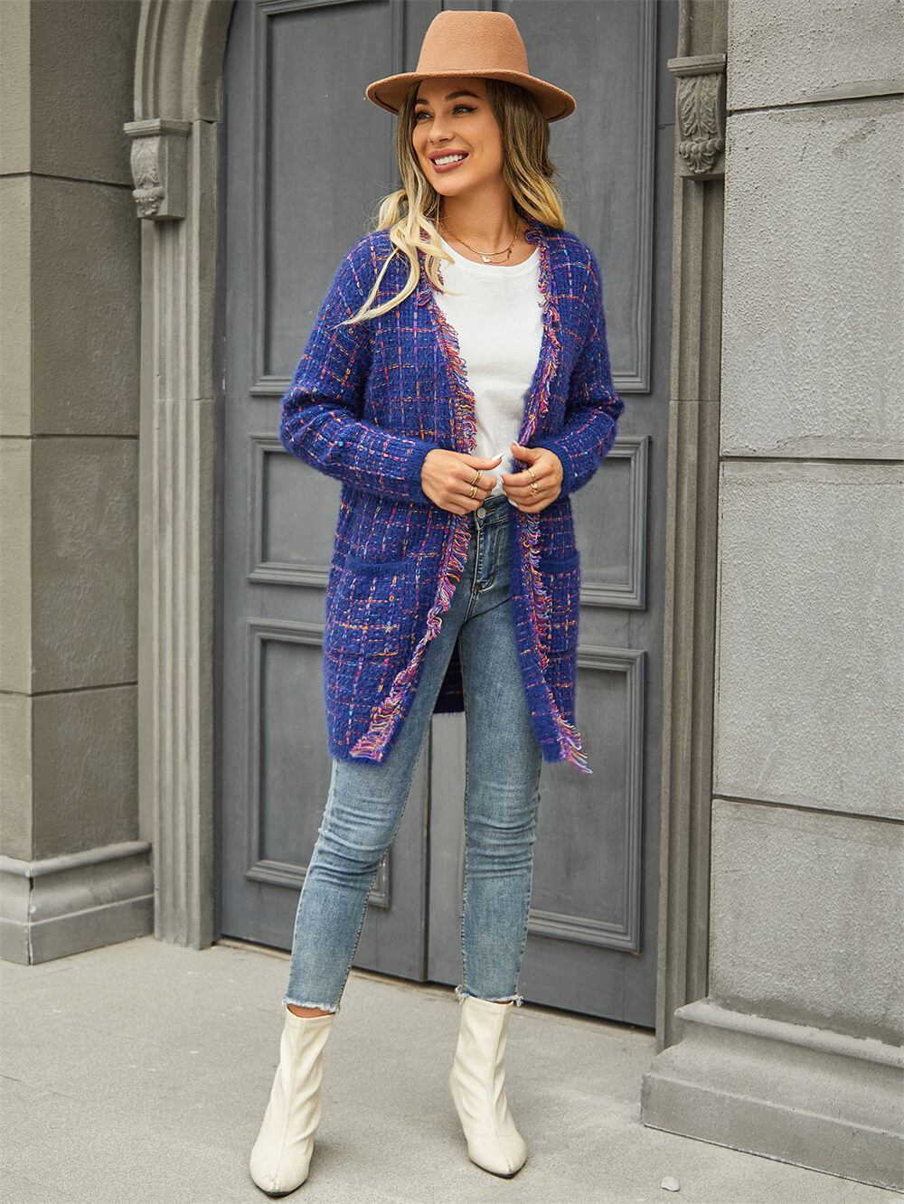 STRIPE POCKET BUTTON UP KNIT CARDIGAN - BLUE