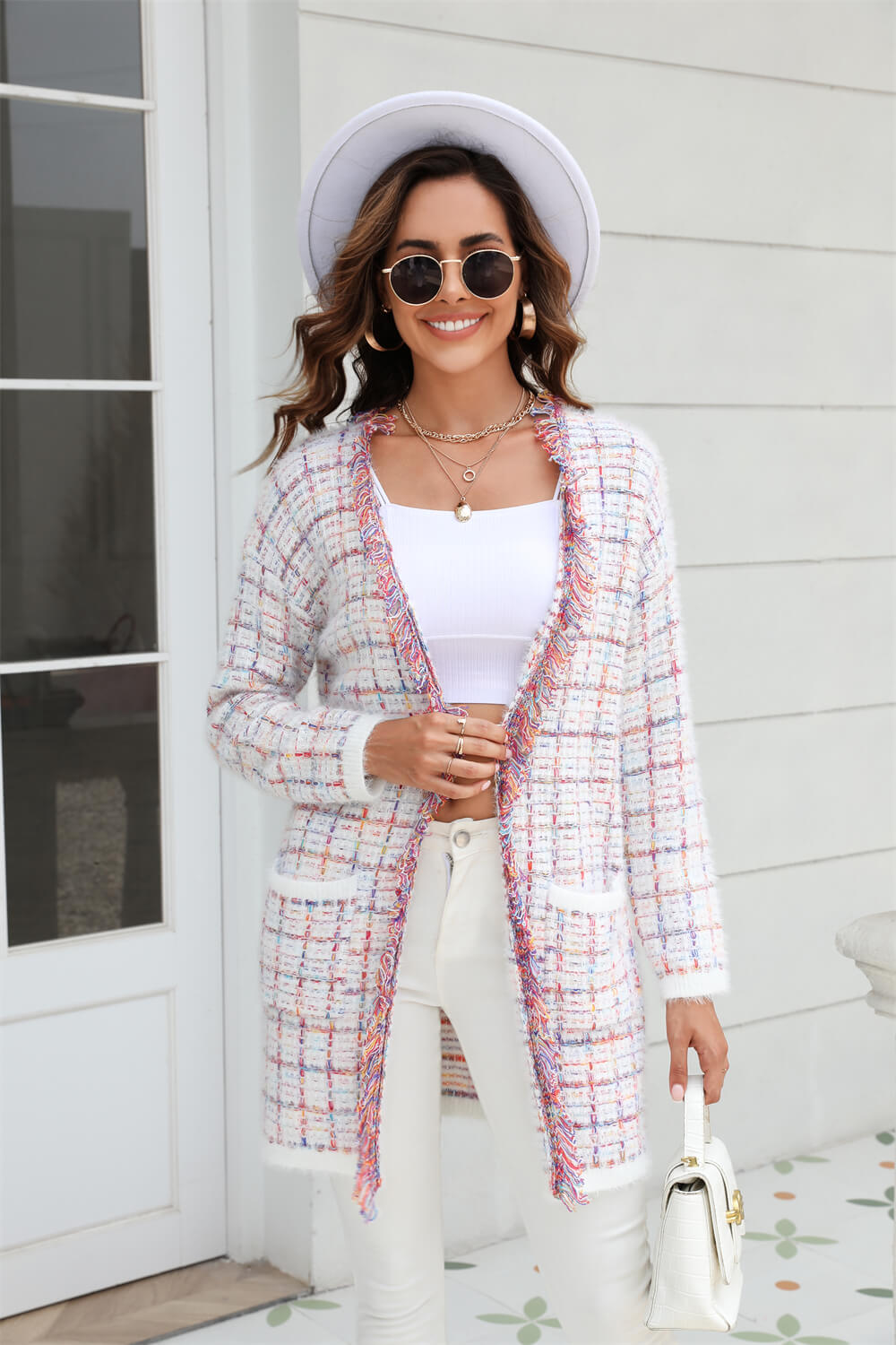STRIPE POCKET BUTTON UP KNIT CARDIGAN - WHITE
