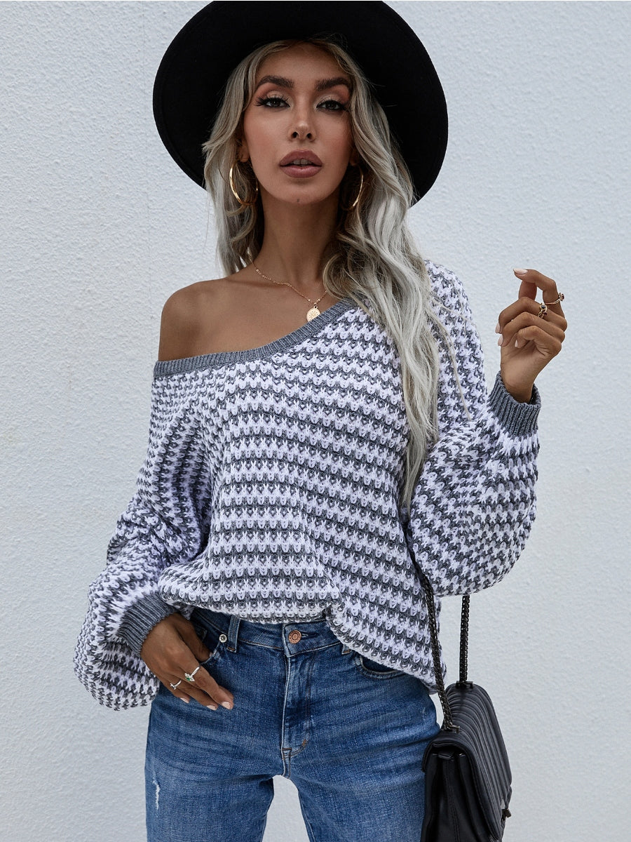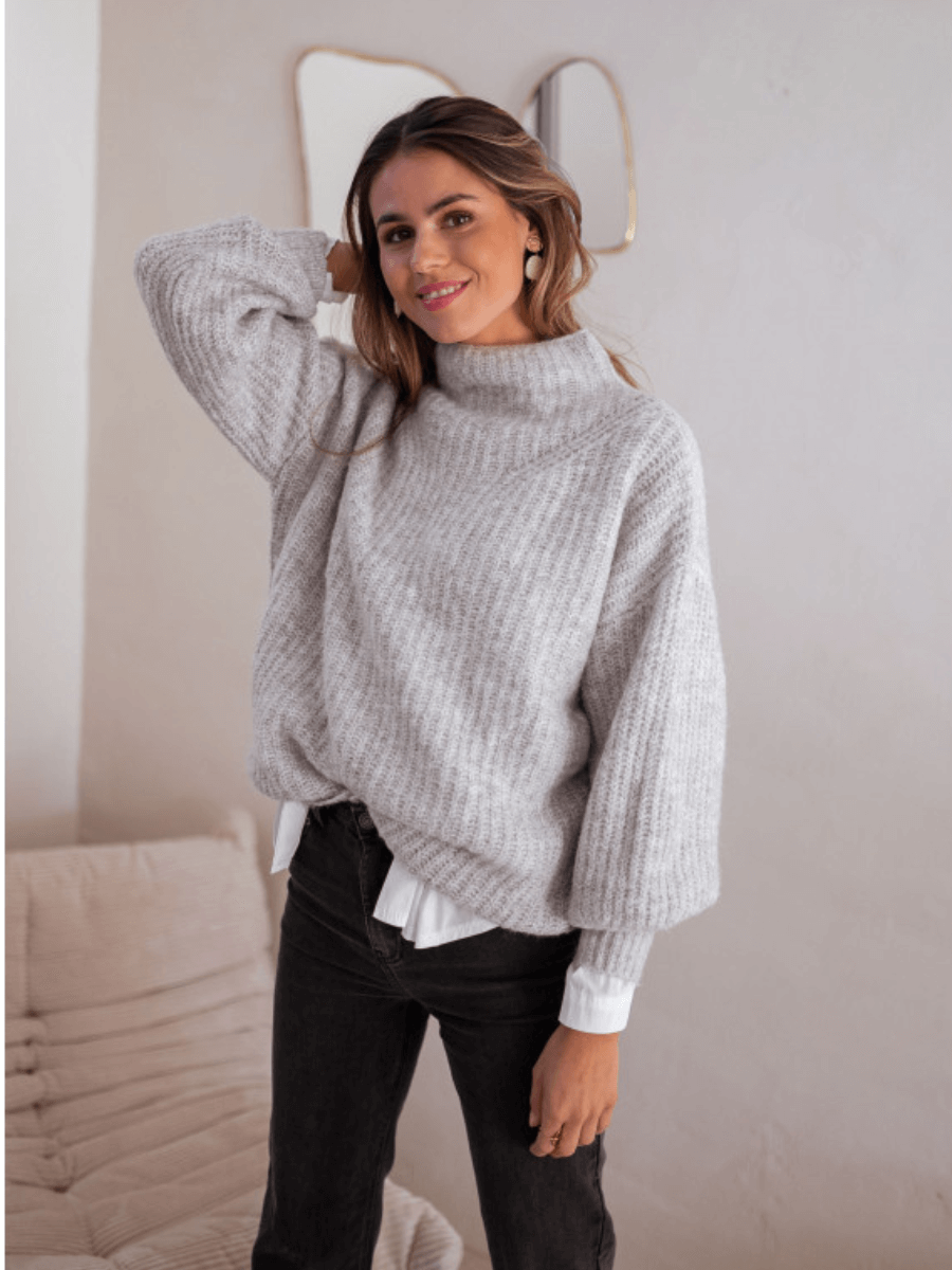 Calistally | Puff sleeve V-Neck Sweater - Grey