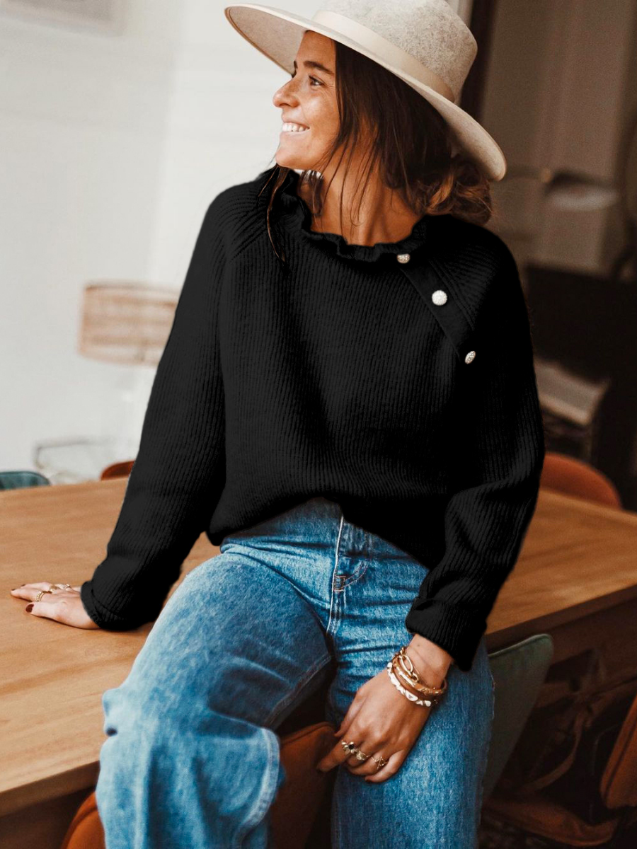 Calistally | Puff sleeve V-Neck Sweater - Black