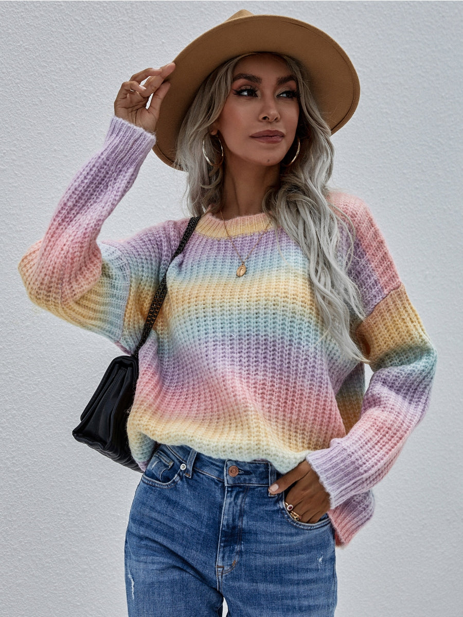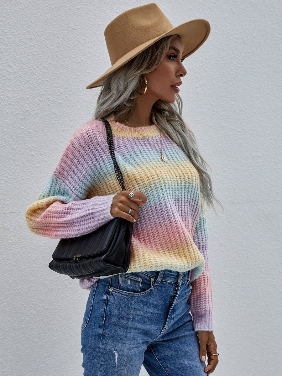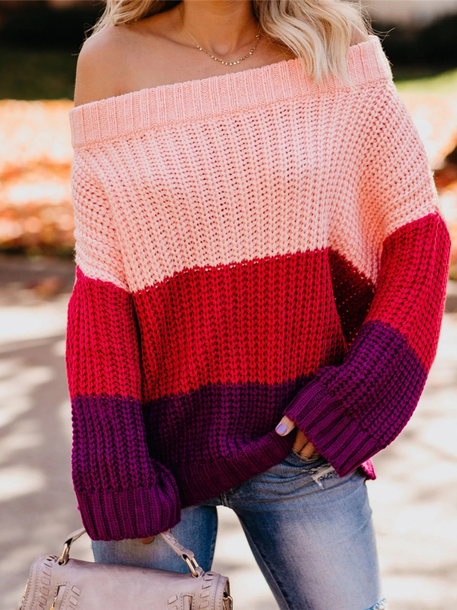 Calistally Doll | EVELINA Pink Red Tri-Stripe Color Knit Pullover