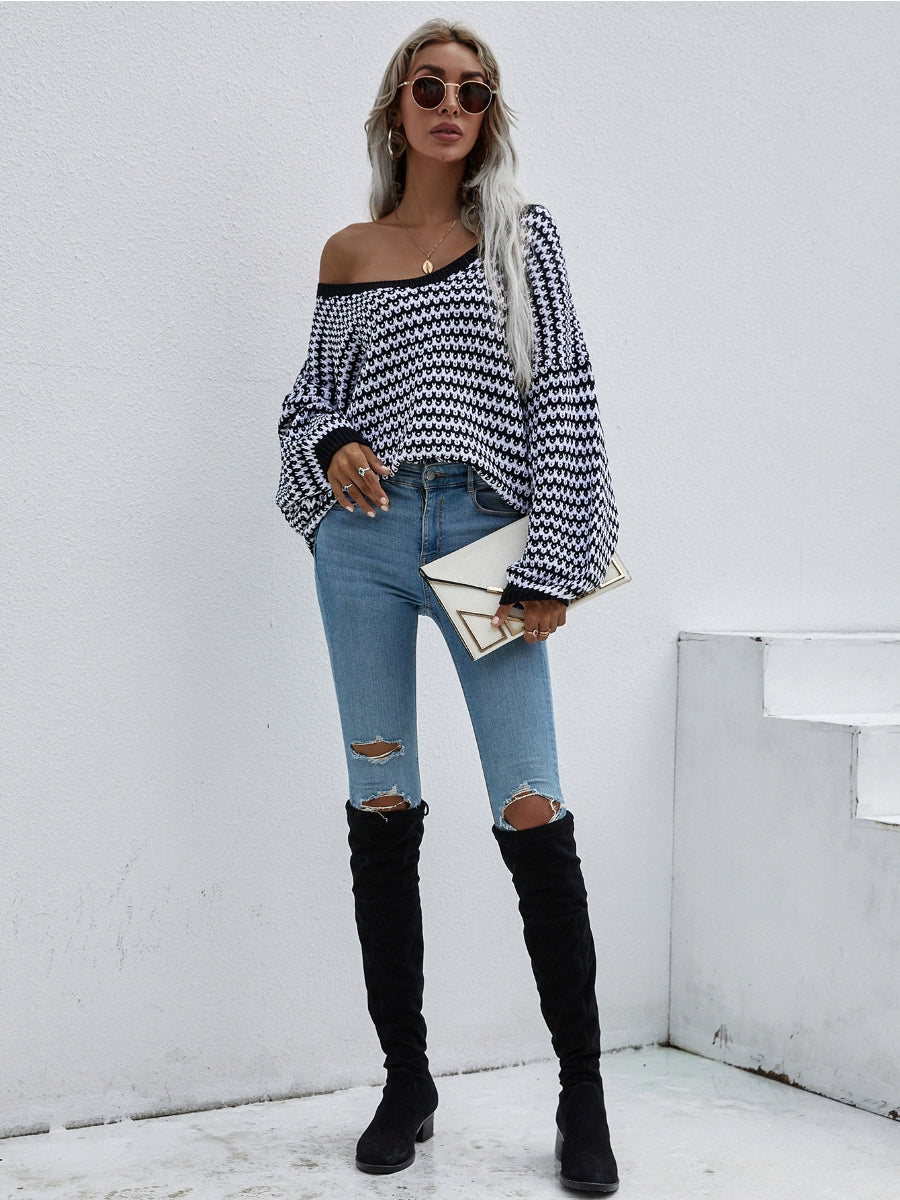 Calistally | GISELE Lantern Sleeve Tighten Cuff Knit Top - Black