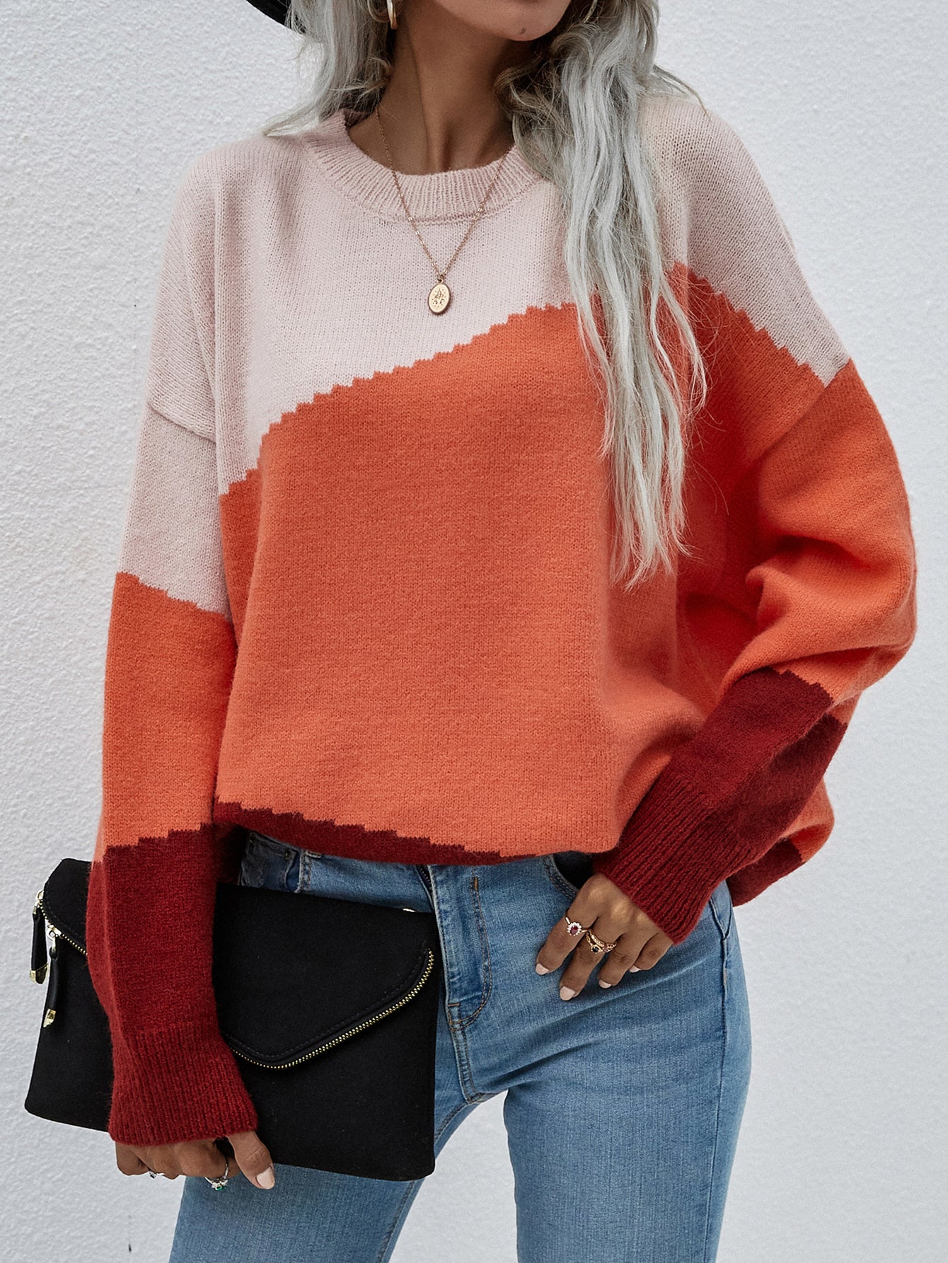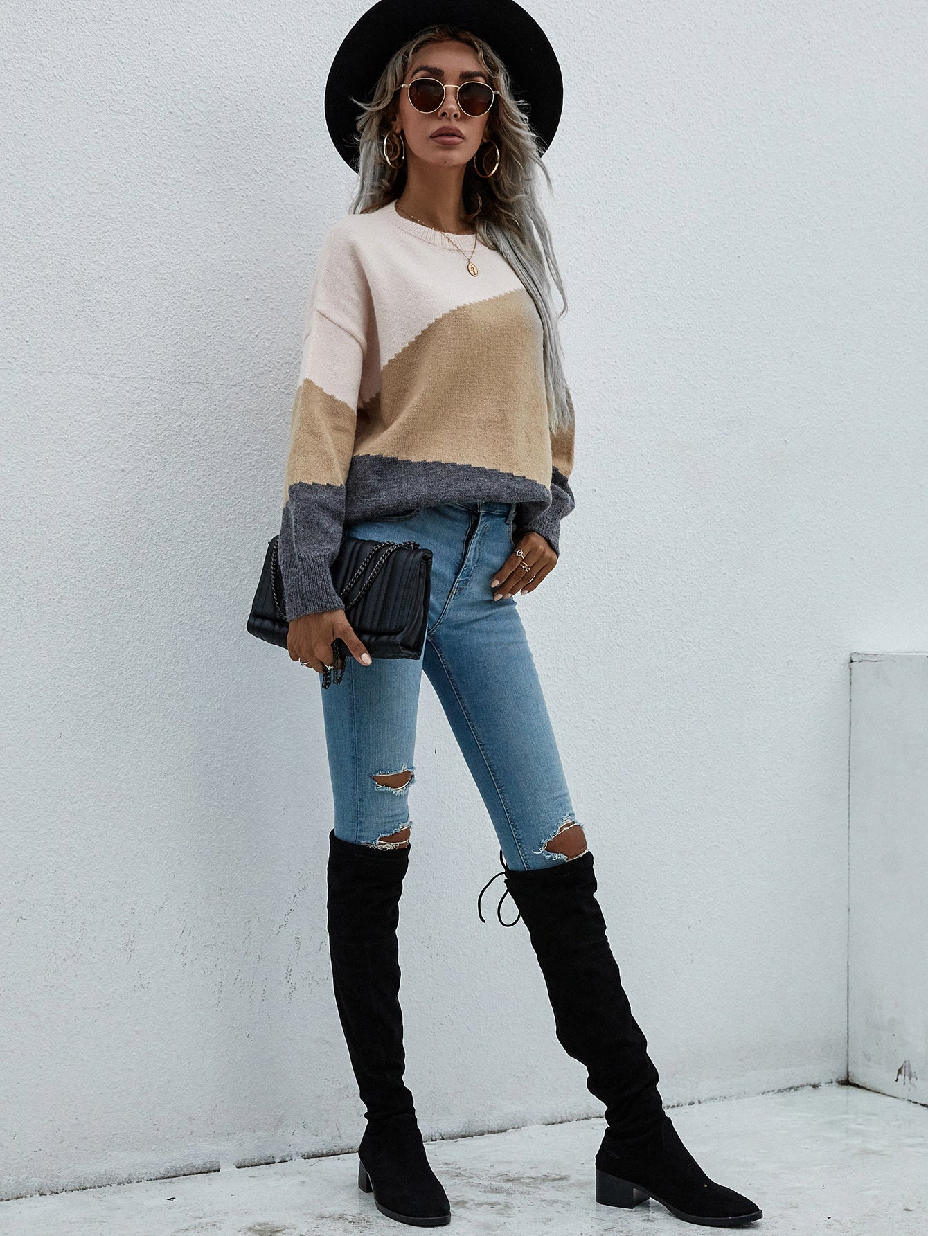 Calistally | GRANIA Two Tone Color Block Knit Sweater - Beige