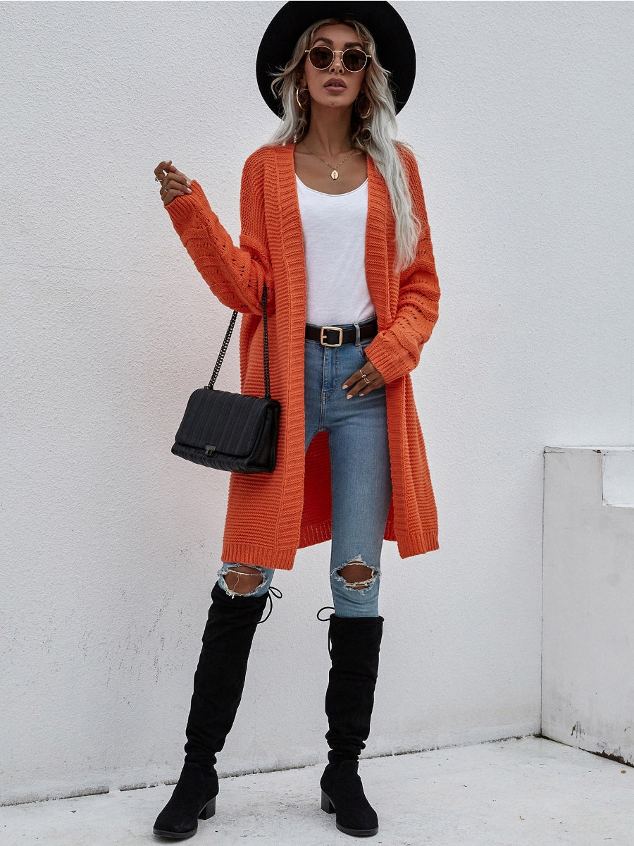 Calistally | Pumpkin Date Knit Cardigan - Orange