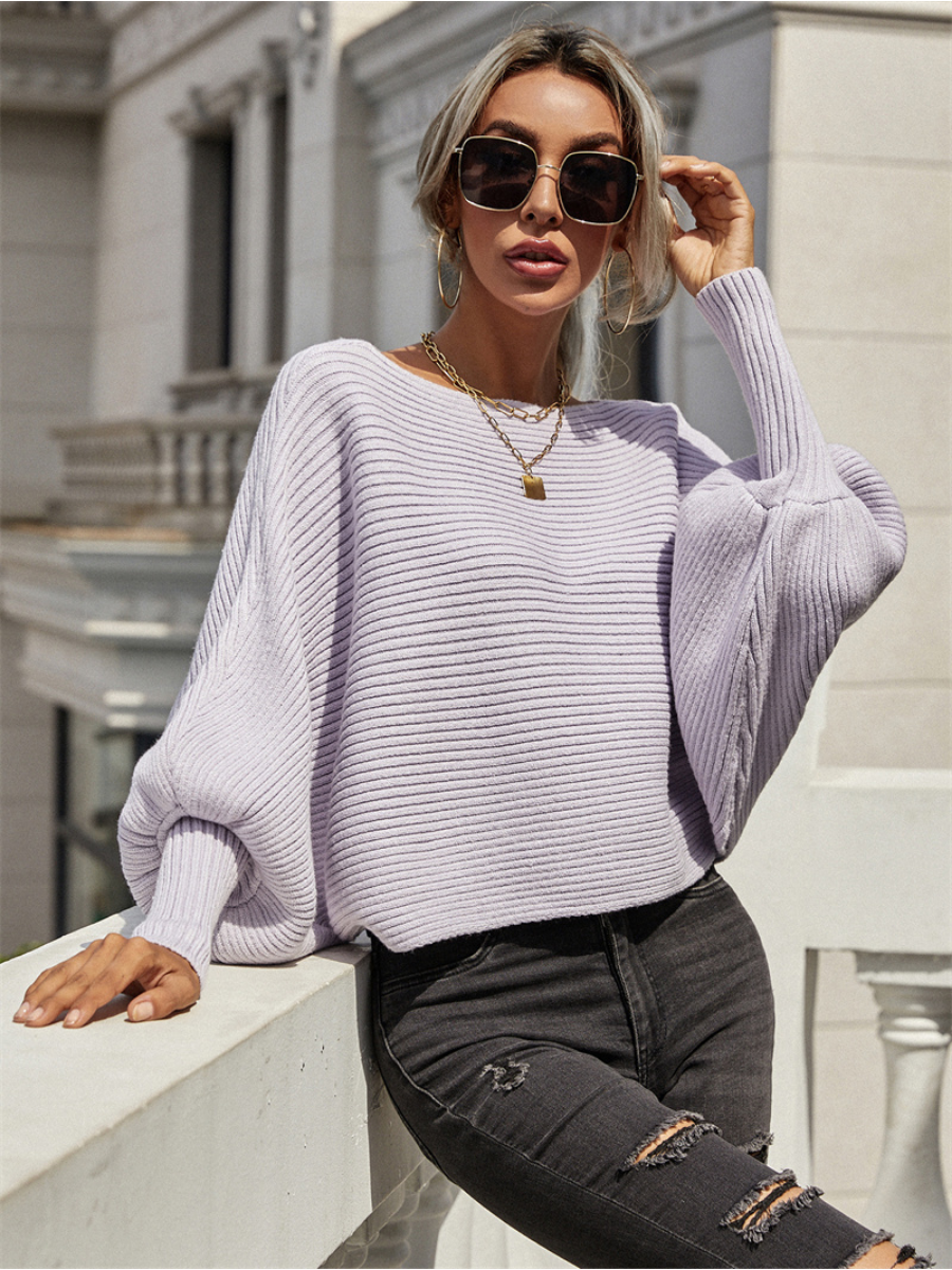 Calistally | Tie-Dye Bat-Sleeve Sweater - Lilac