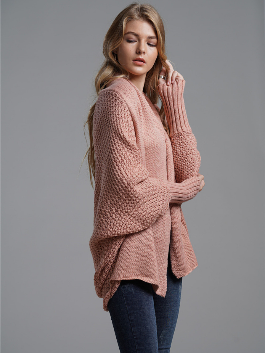 Calistally | GISELE Lantern Sleeve Tighten Cuff Knit Top - Lavender