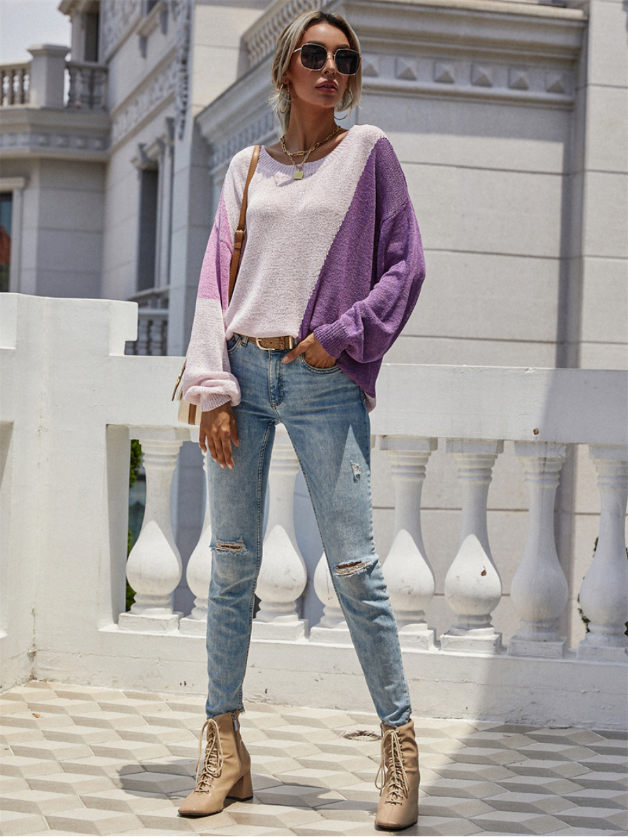 Calistally | GRANIA Two Tone Color Block Knit Sweater - Purple