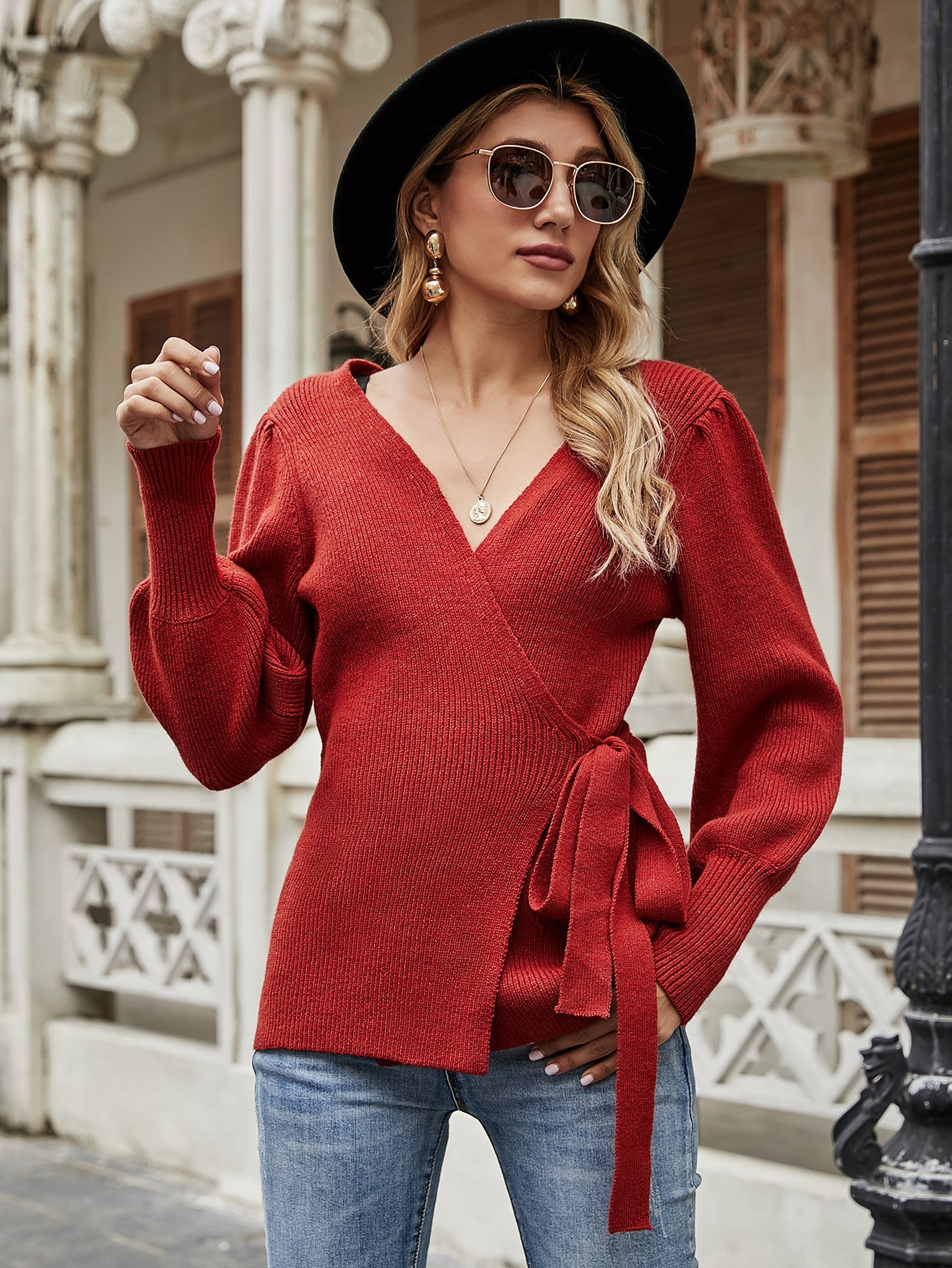 Calistally | LEONORA Bishop Sleeve Knit Top - Red