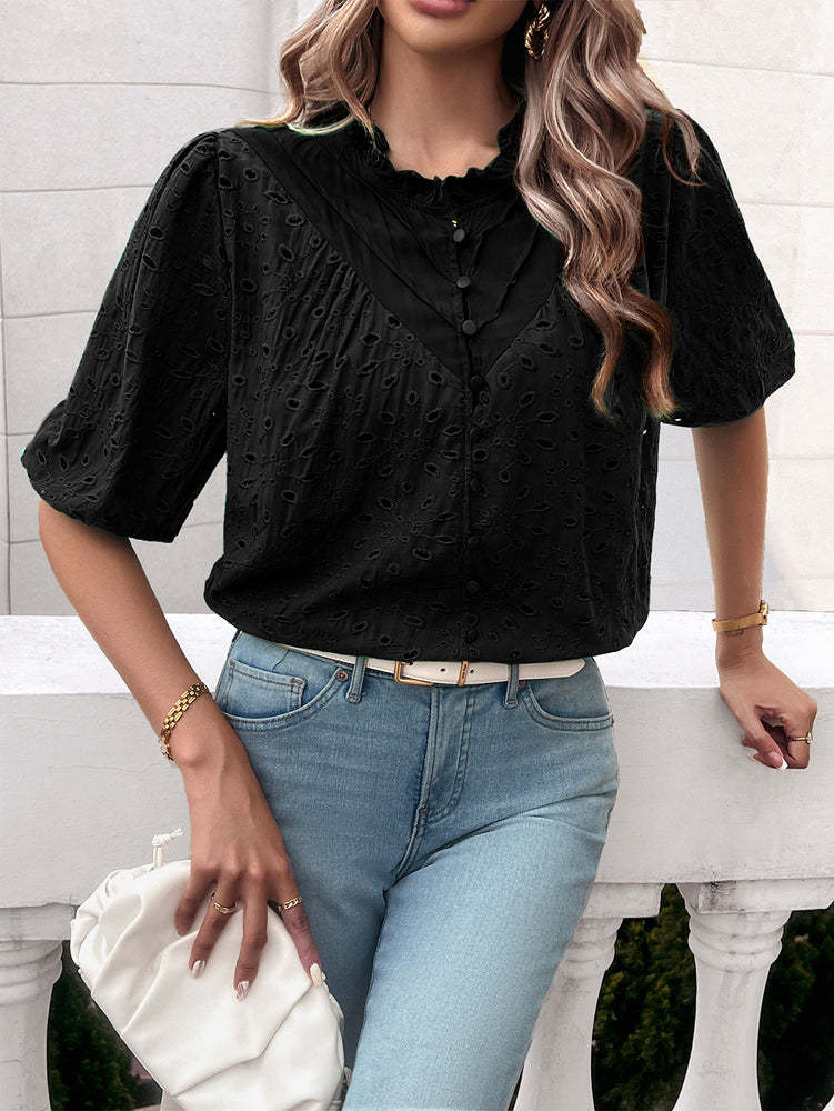 Ventura Eyelet Short Sleeve Blouse - Black