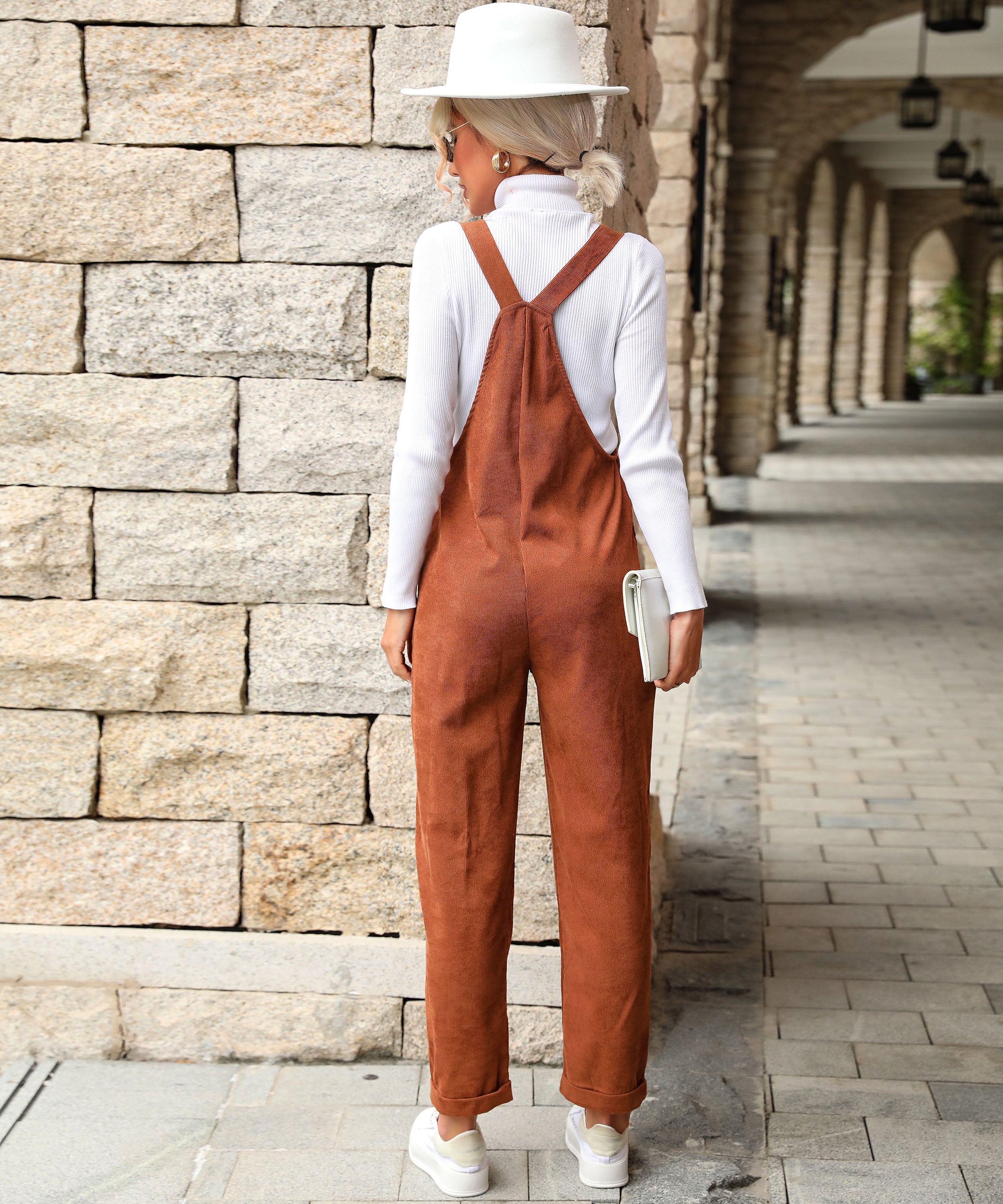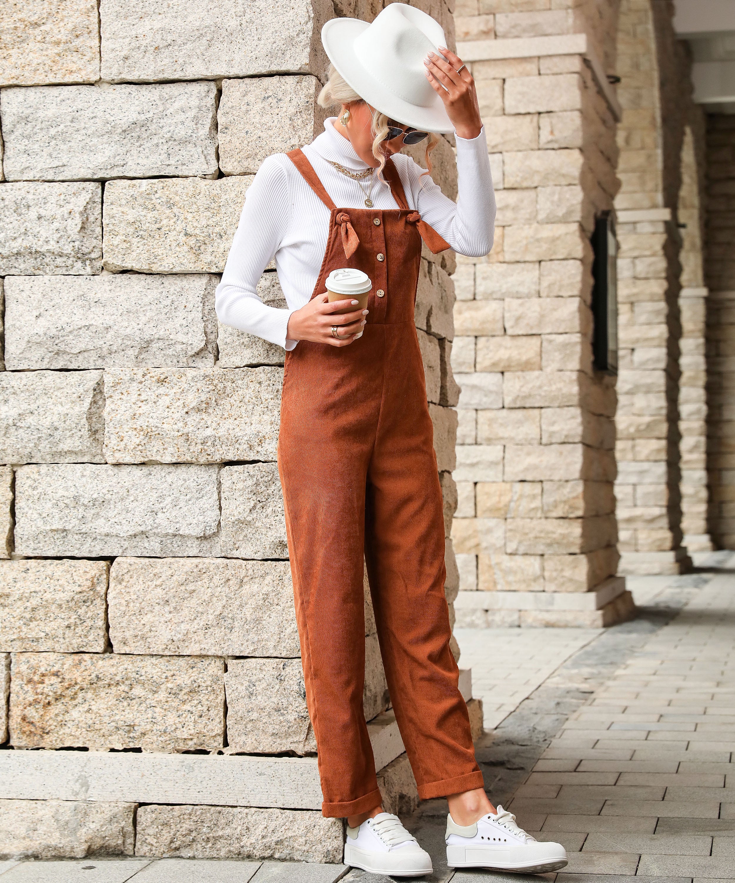BRADY BELL FALL CORDUROY ROMPERS - CARAMEL
