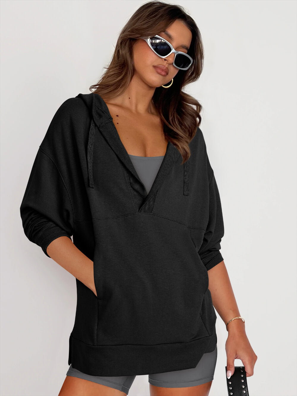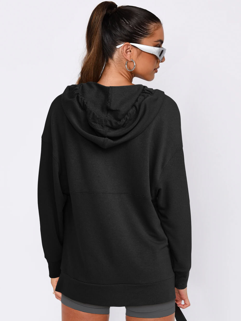 Forever Essential Pocketed Cotton Blend Hoodie - Black
