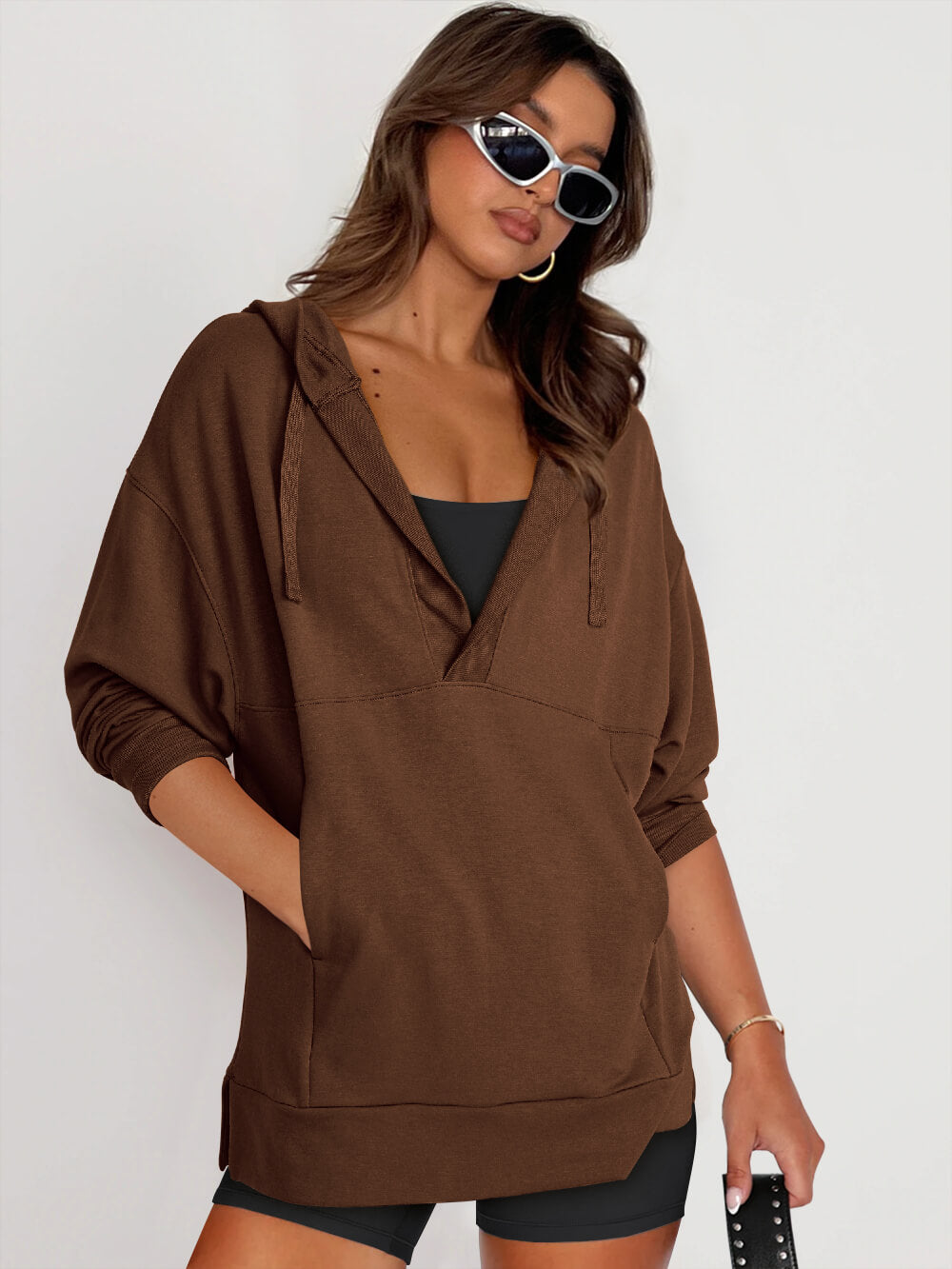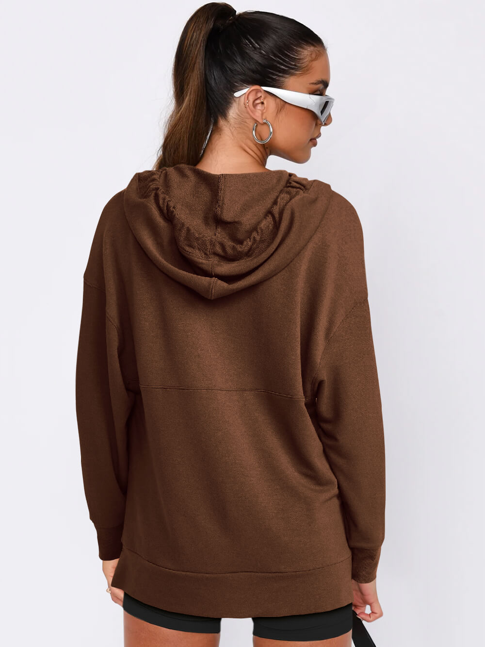 Forever Essential Pocketed Cotton Blend Hoodie - Coffee