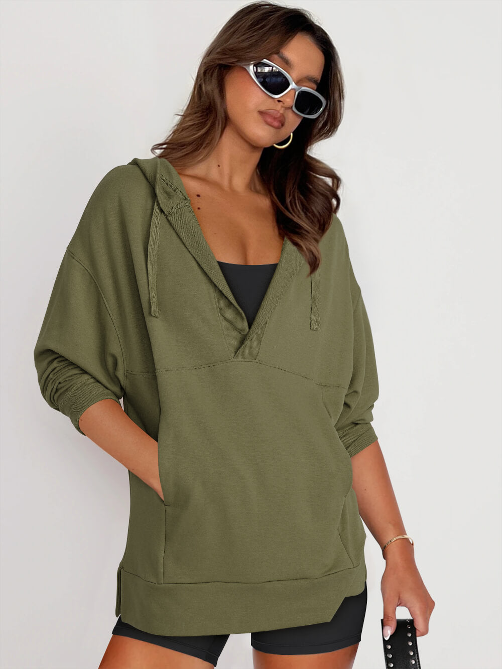 Forever Essential Pocketed Cotton Blend Hoodie - Olive
