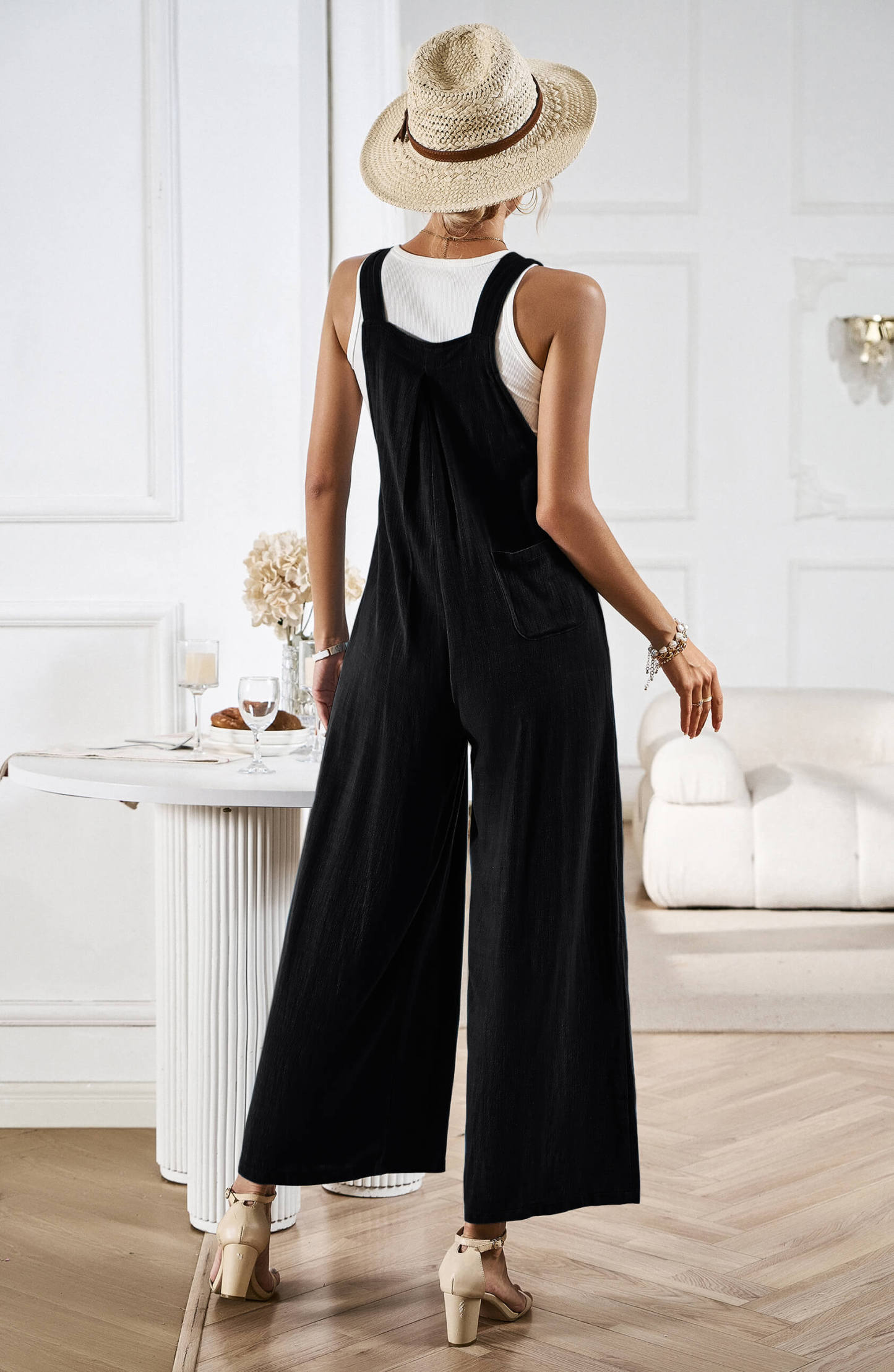 LINETTE WIDE LEG LINEN OVERALLS - BLACK
