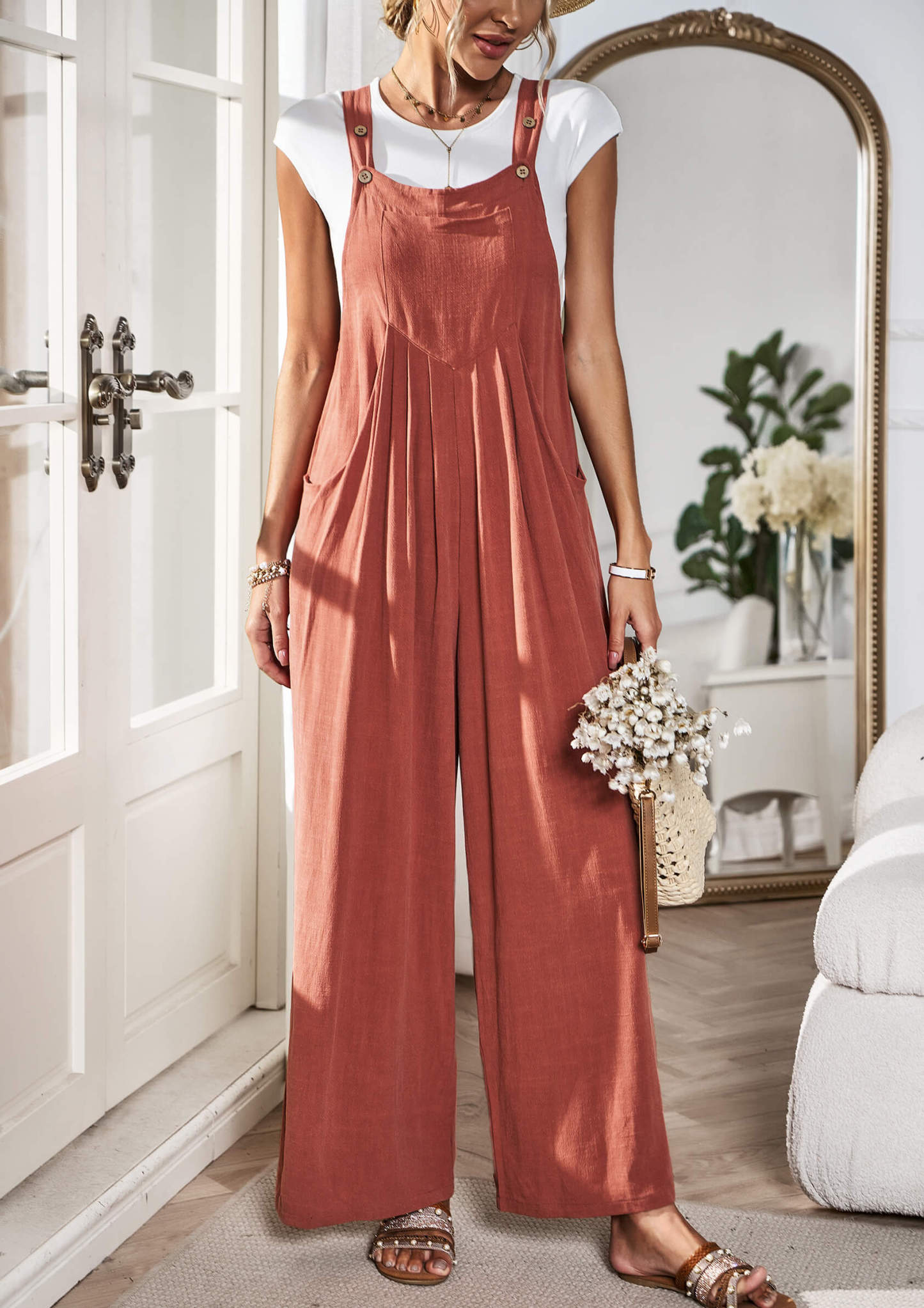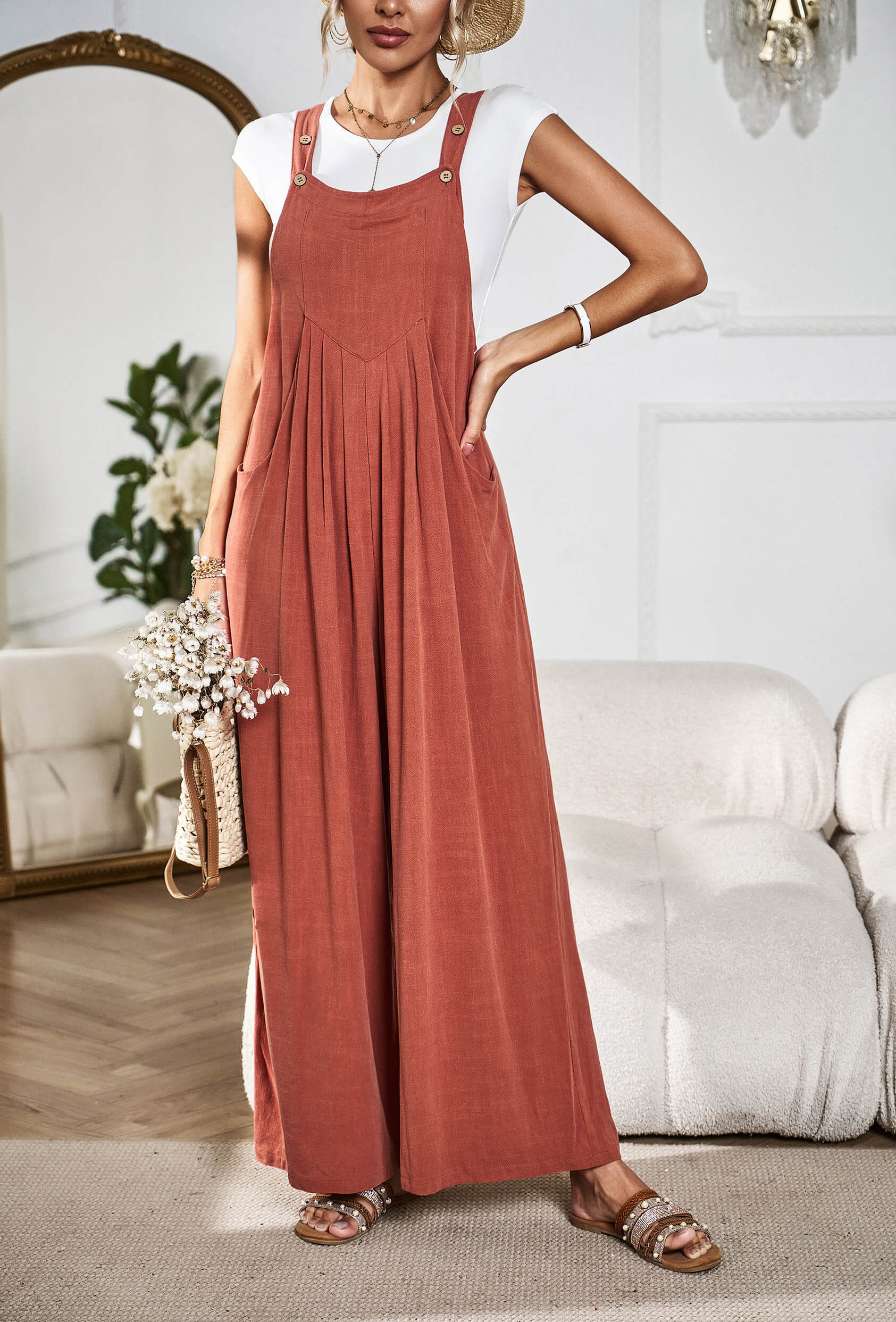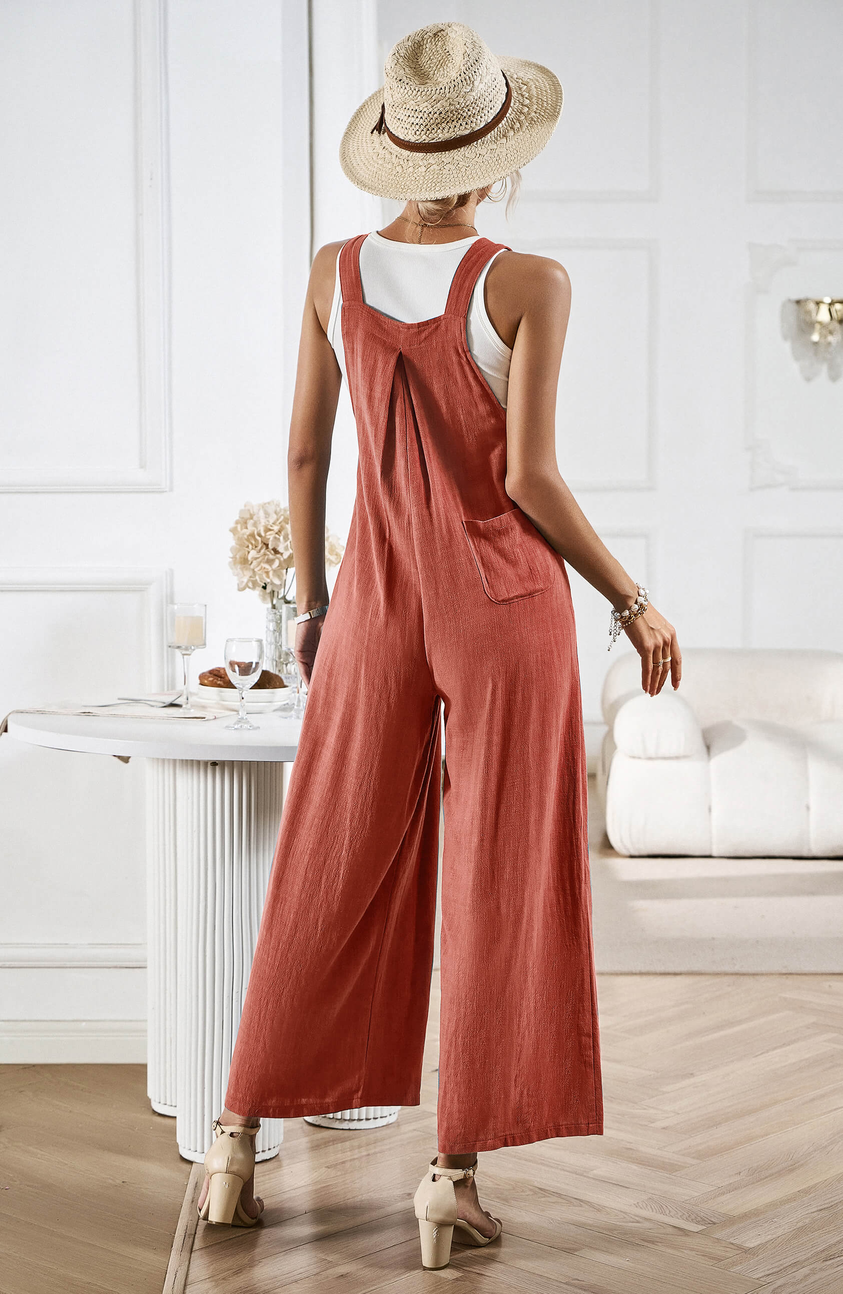 LINETTE WIDE LEG LINEN OVERALLS - RUST