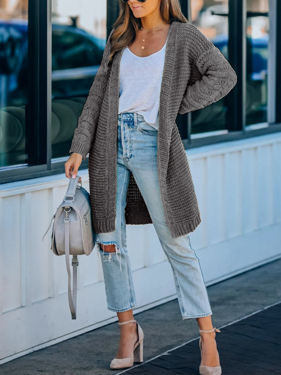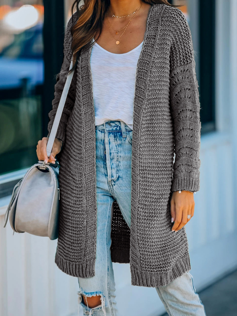 Calistally Doll | Grey Braid Open Knit Long Cardigan