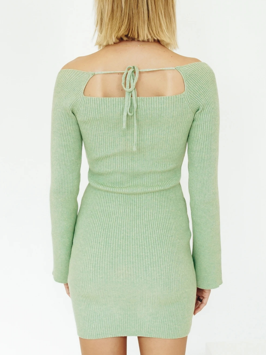 Calistally Doll | Low Neck Tie Open Back Knit Dress - Mint
