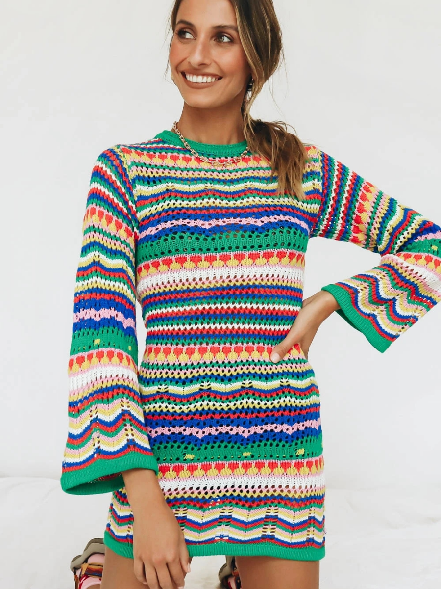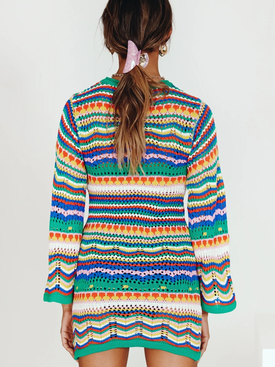 Calistally | Zig Zag Crochet Knit Dress - Green