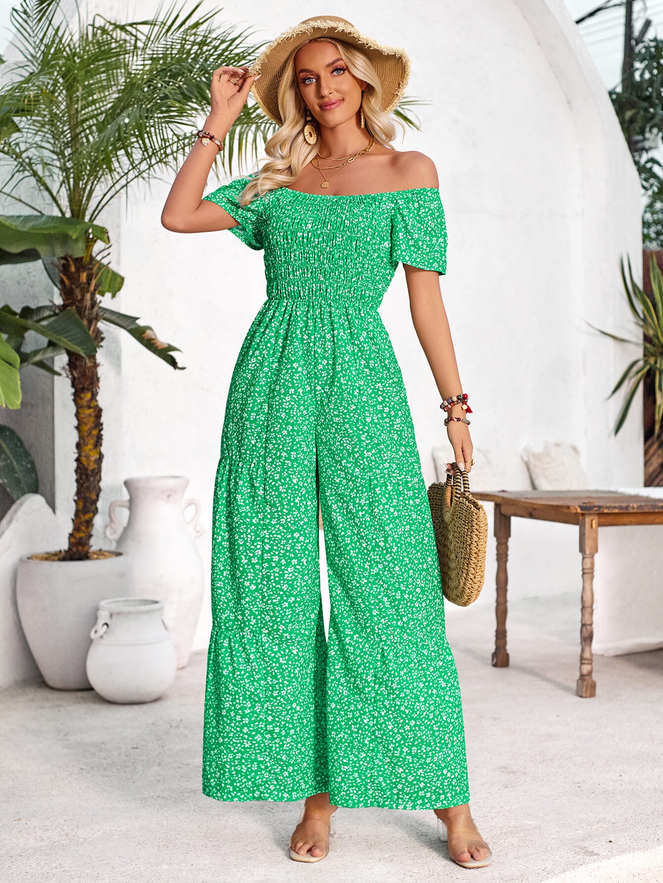 Tammy Off-Shoulder Jumpsuit - Green