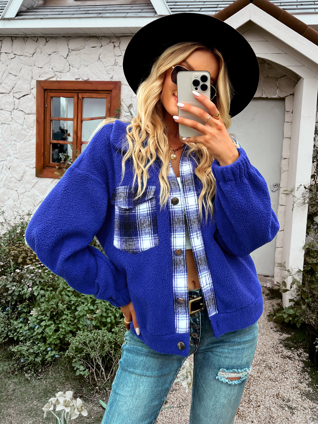 THAT FEELING POCKETED FUZZY JACKET - BLUE