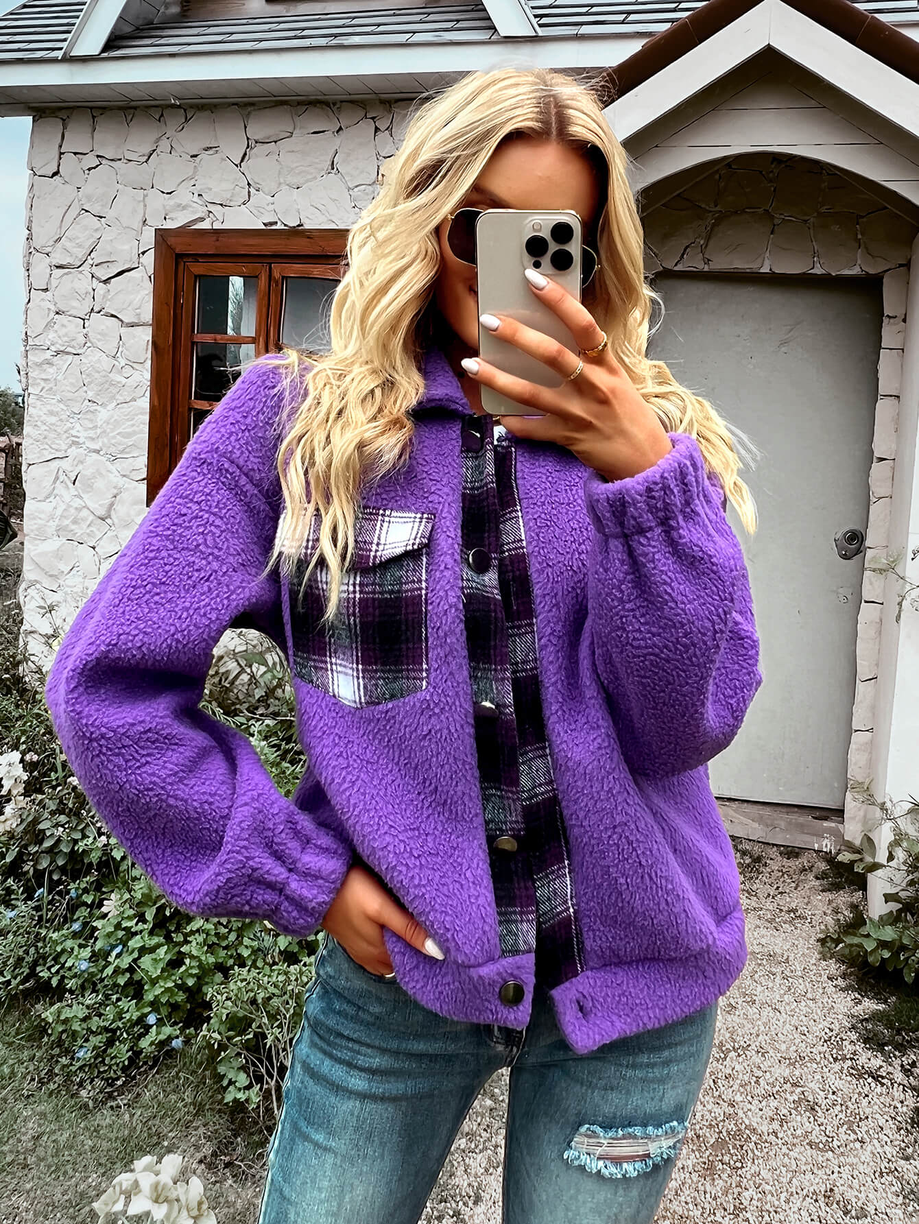 THAT FEELING POCKETED FUZZY JACKET - PURPLE