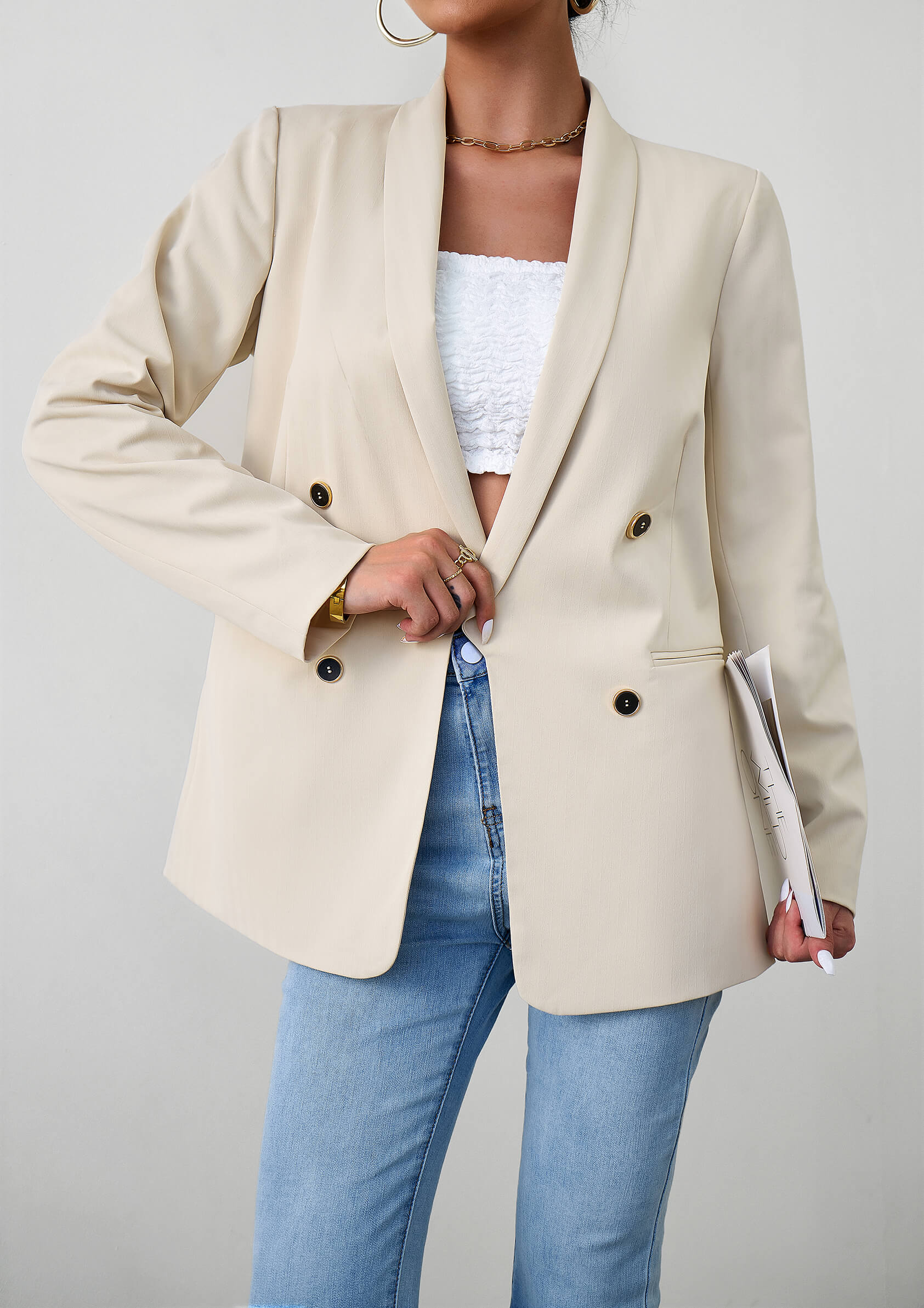 Uptown Girl Pocketed Blazer - Apricot