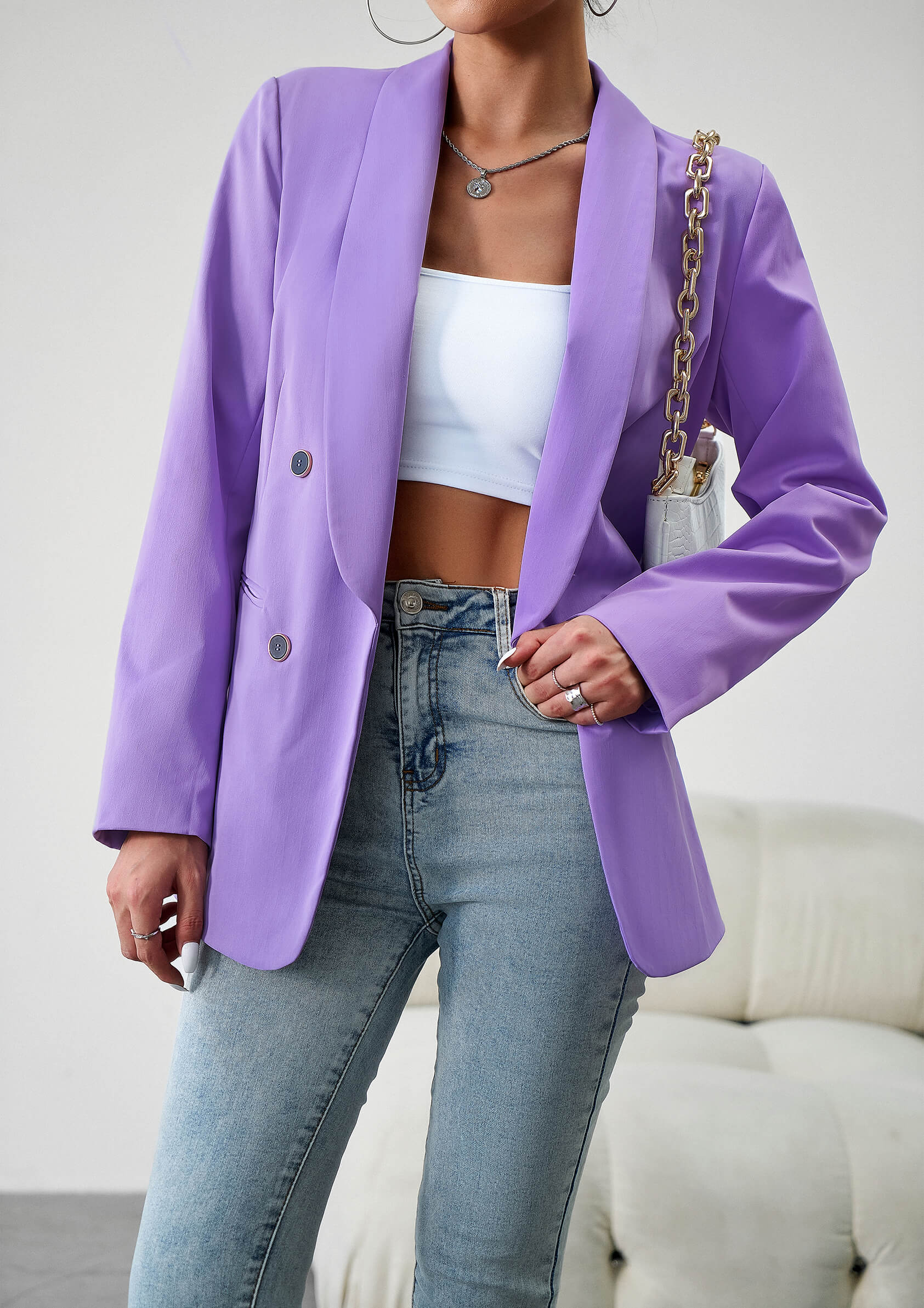 Uptown Girl Pocketed Blazer - Purple