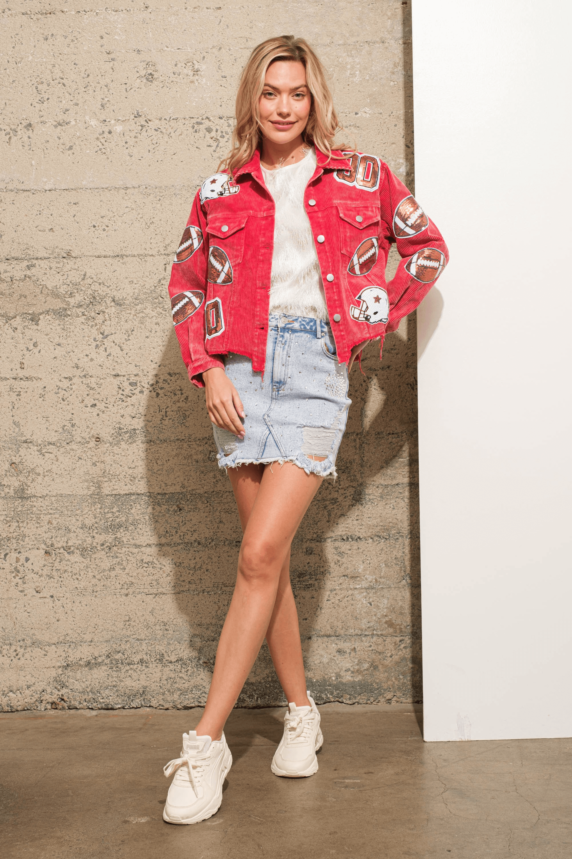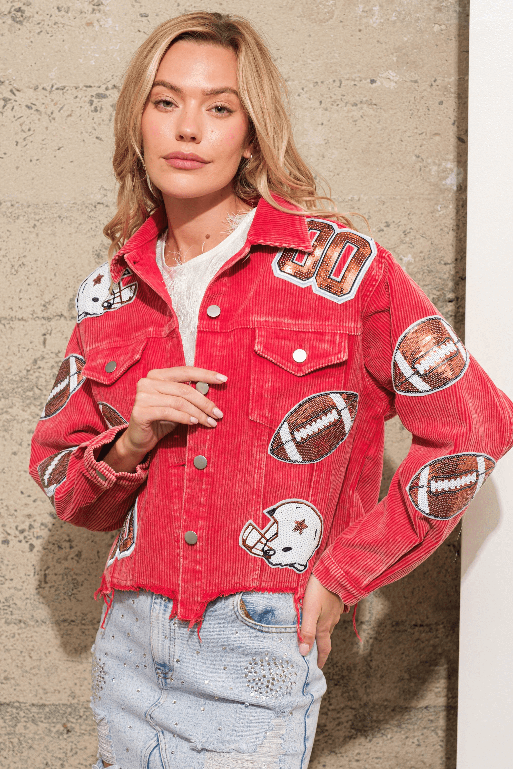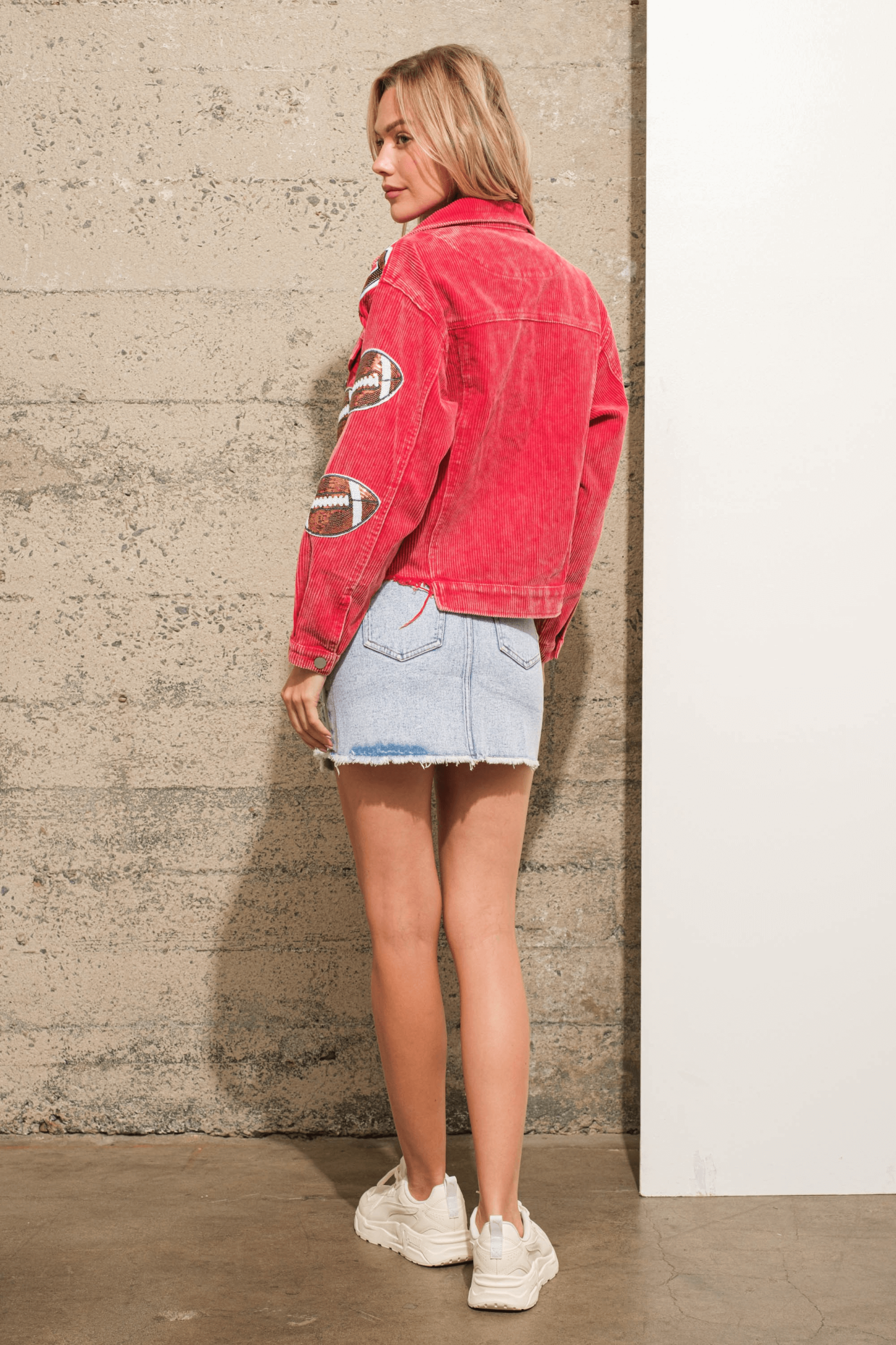 Wide Receiver Ready Sequin Corduroy Jacket - Pink